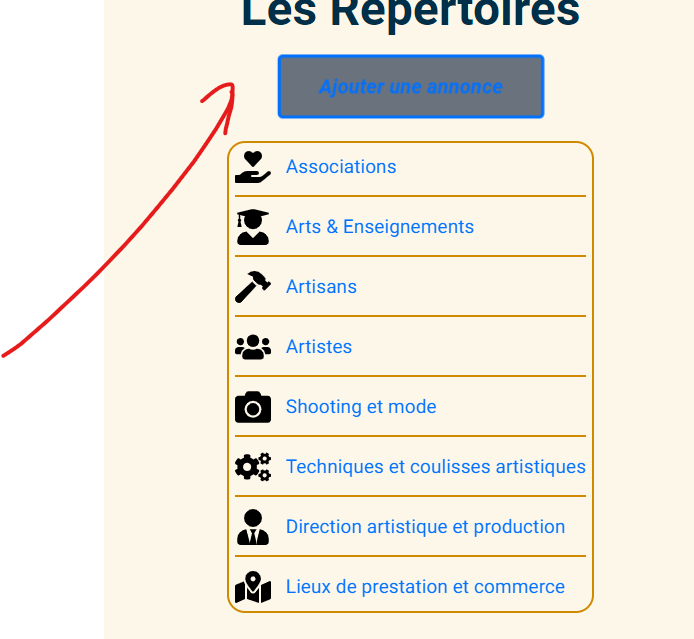 Artistes, n’hésitez pas à vous faire une page artiste dans « rétertoires » puis « Ajouter une annonce »